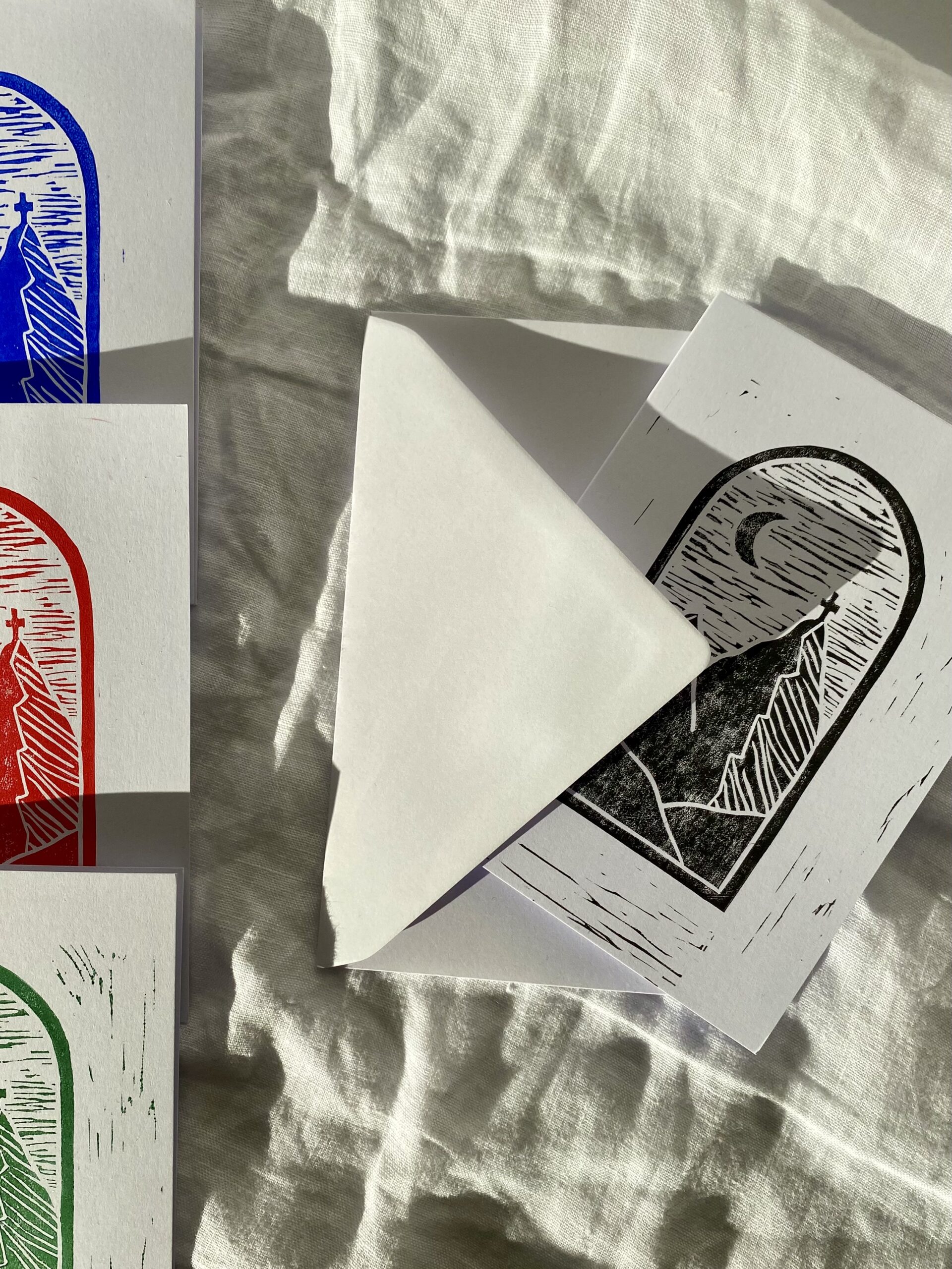 Diese handgefertigte Linolschnitt-Karte ist ein besonderes Stück Kunsthandwerk: Das Motiv wird von Hand geschnitzt und jede Karte einzeln gedruckt – dadurch ist jedes Exemplar ein echtes Unikat.