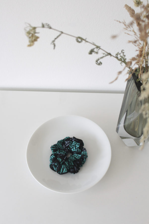 Schillernd wir eine Libelle und so schonend zu deinen Haaren, setzt der Scrunchy “Kereng’ende” nicht nur ein Highlight in deinen Haaren, sondern ist auch ein hübsches Accessoire solltest du ihn an deinem Handgelenk tragen.